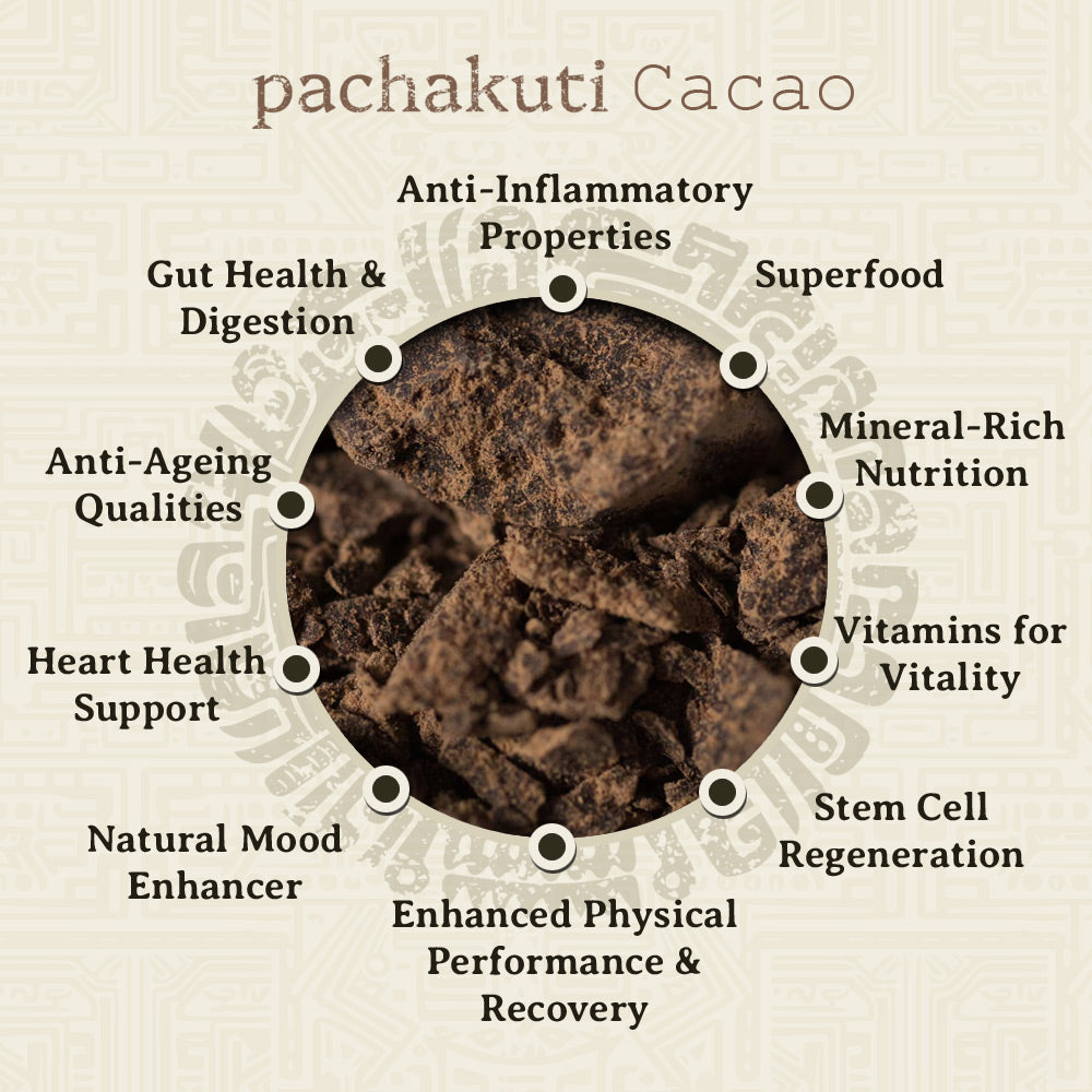 Cacao has long been revered for its healing powers. Pachakuti Cacao is rich in flavonoids—natural compounds that combat oxidative stress and reduce inflammation. By neutralising free radicals, it helps protect cellular structures, supporting immune function and overall vitality. This ancient superfood aids your body’s natural healing process while promoting balance and wellness.